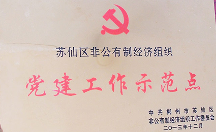 | 公司獲蘇仙區(qū)非公有制經(jīng)濟(jì)組織黨建工作示范點(diǎn) |