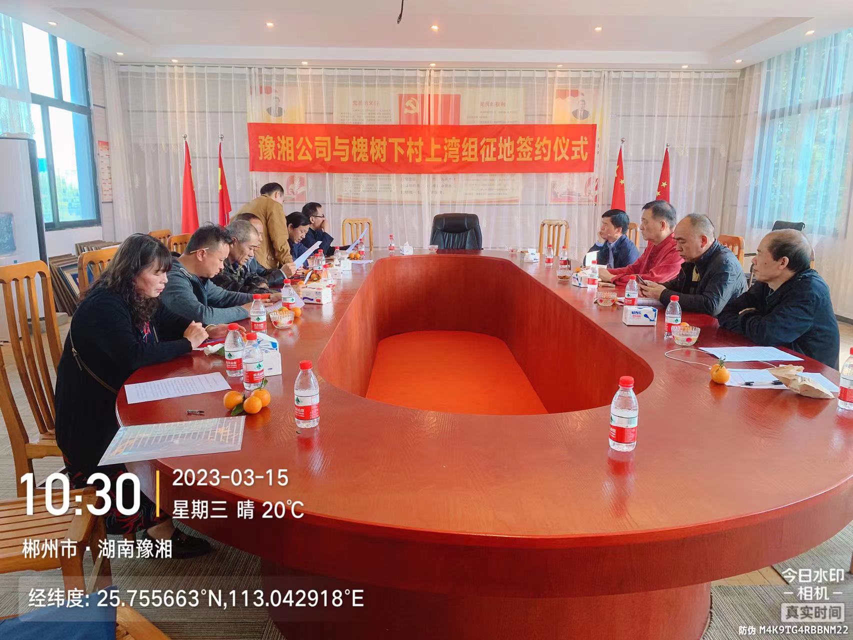 2023年3月15日豫湘公司與槐樹下村上灣組征地協(xié)議簽字儀式在豫湘公司辦公樓二樓會議室在歡快、和諧的氣氛中進行,從此,豫湘公司在新發(fā)展征程上邁出了關鍵的一步,從此豫湘公司在新發(fā)展征程上邁出了關鍵的一步。 |